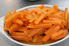 4.すべてのスパイスをよく人参に混ぜ込み、レモンジュースとオリーブ油も加え、全体をよく混ぜる。1時間ほどで食べられるようになる。
